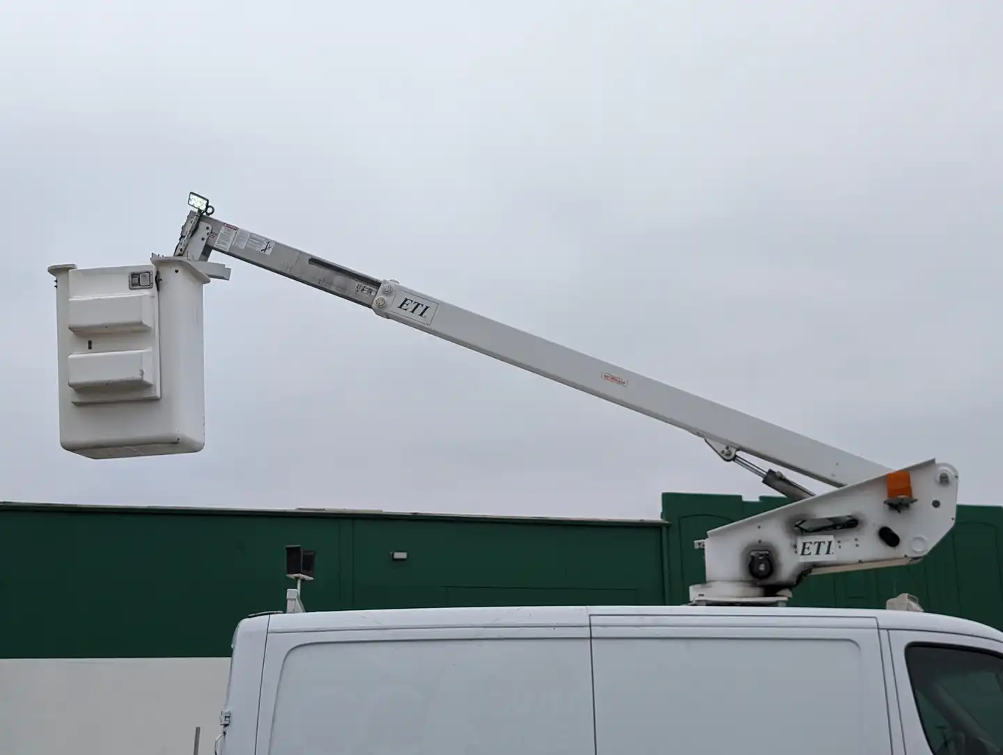 The 2013 Mercedes-Benz Sprinter 3500 Bucket Boom Standard Roof Cargo Van 144WB DIESEL is a versatile and reliable work vehicle designed to meet demanding commercial needs. With a 144-inch wheelbase, a gross vehicle weight rating (GVWR) of 9,990 lbs, and spacious dimensions measuring 232.5" long, 79.7" wide, and 110.8" high, this van offers ample cargo space and robust performance powered by a diesel engine. Its bucket boom feature adds functionality for tasks requiring elevated reach, making it ideal for various industries.
