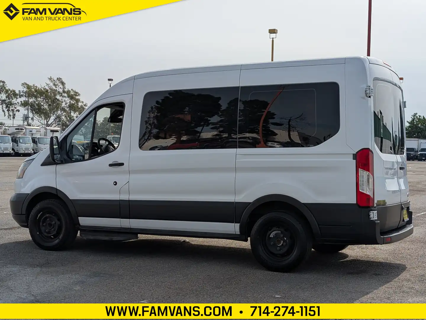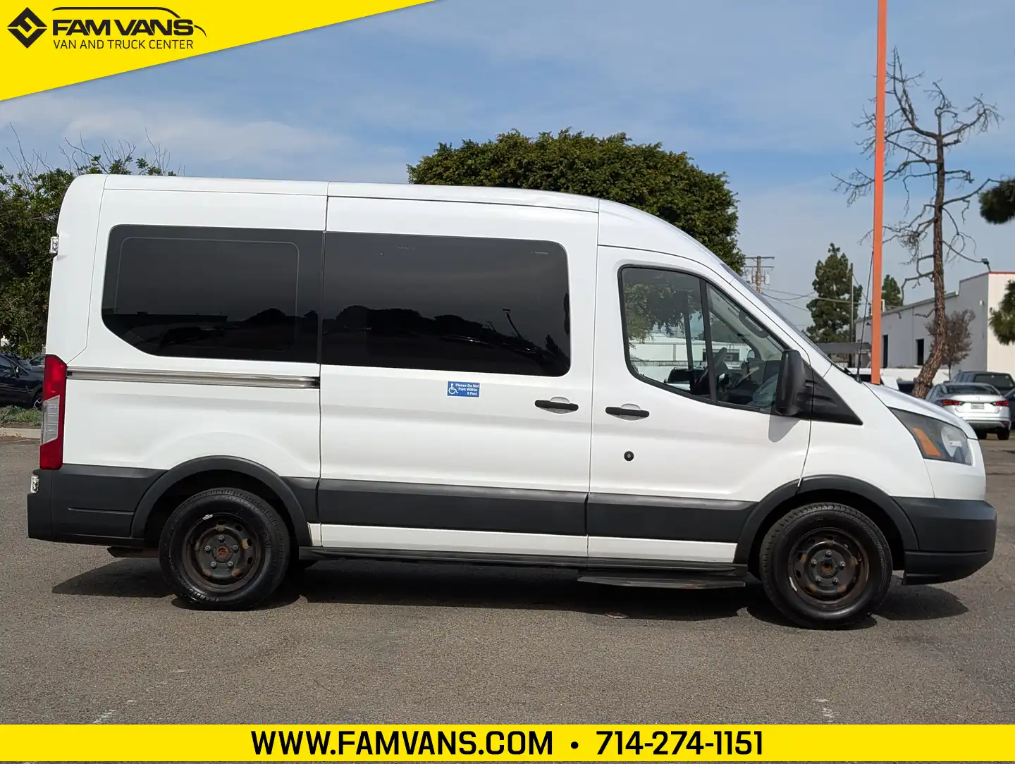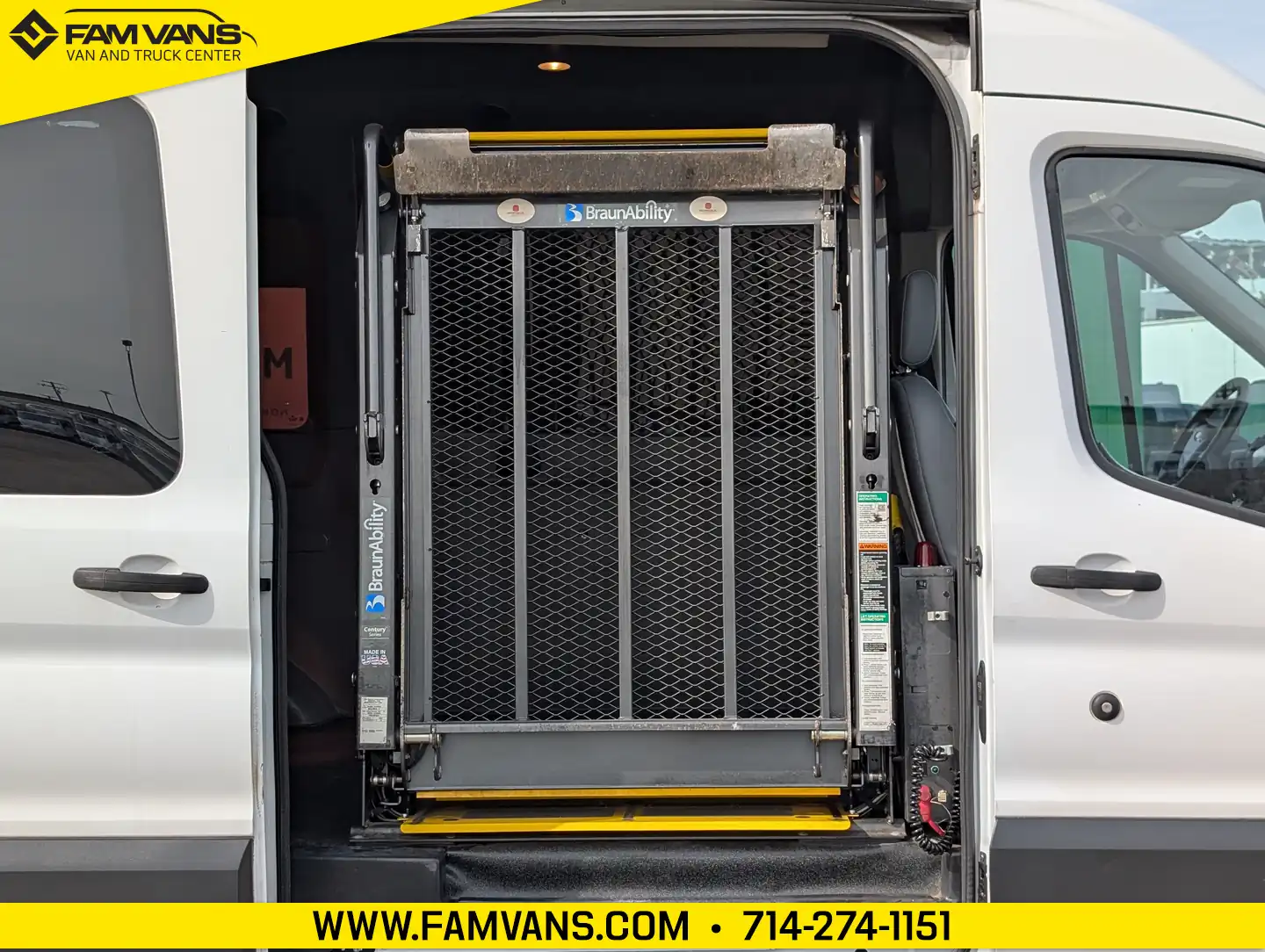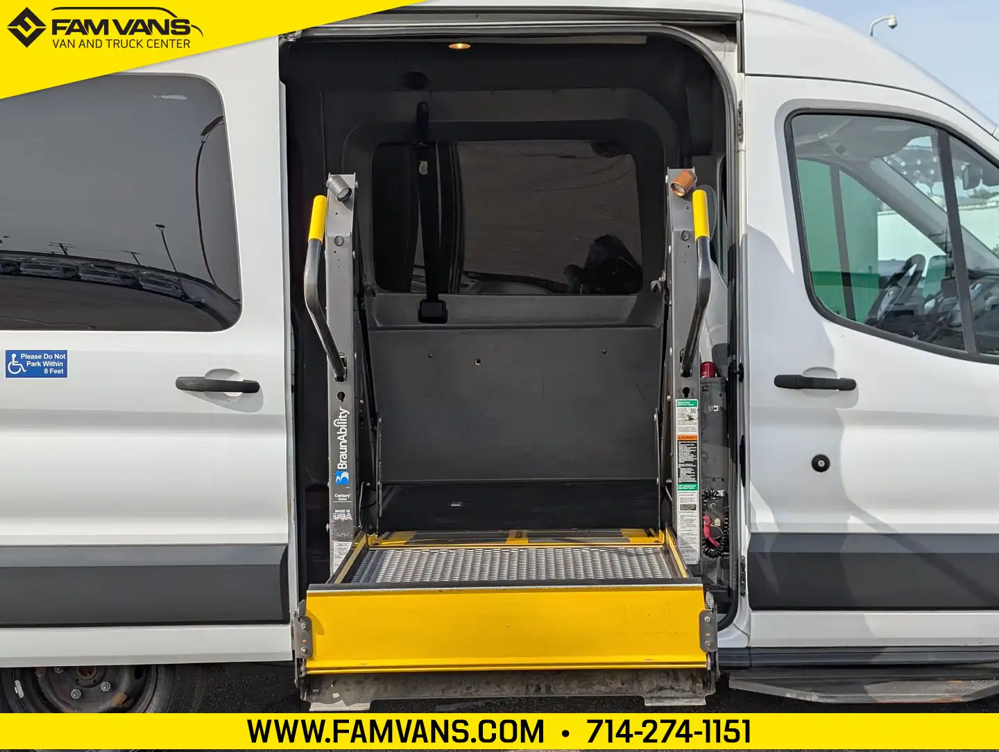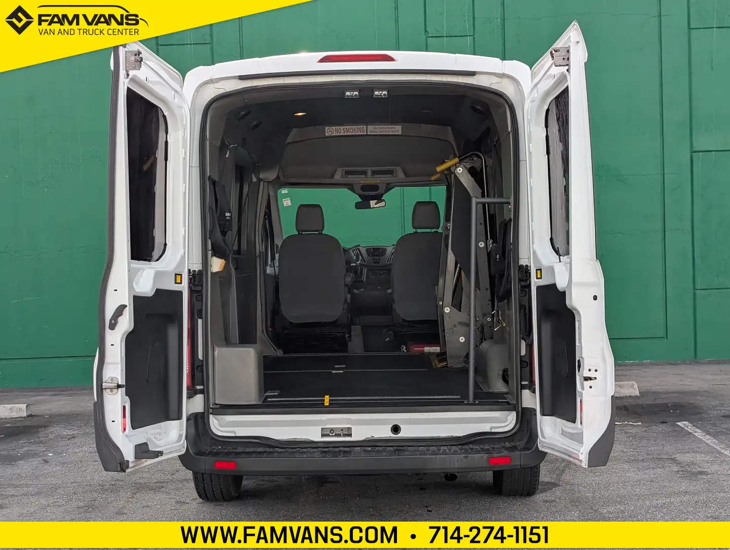 The 2017 Ford Transit-150 Wheelchair Access Handicap Mid Roof Passenger Van is a versatile and spacious vehicle designed to accommodate passengers with mobility needs comfortably. Featuring a 130-inch wheelbase and a robust GVWR of 8,600 lbs, this van includes a curb-side wheelchair lift and a sliding passenger door for easy access. It also comes equipped with a backup camera for added safety and measures 217.8 inches in length and 100.8 inches in height, providing ample interior space.