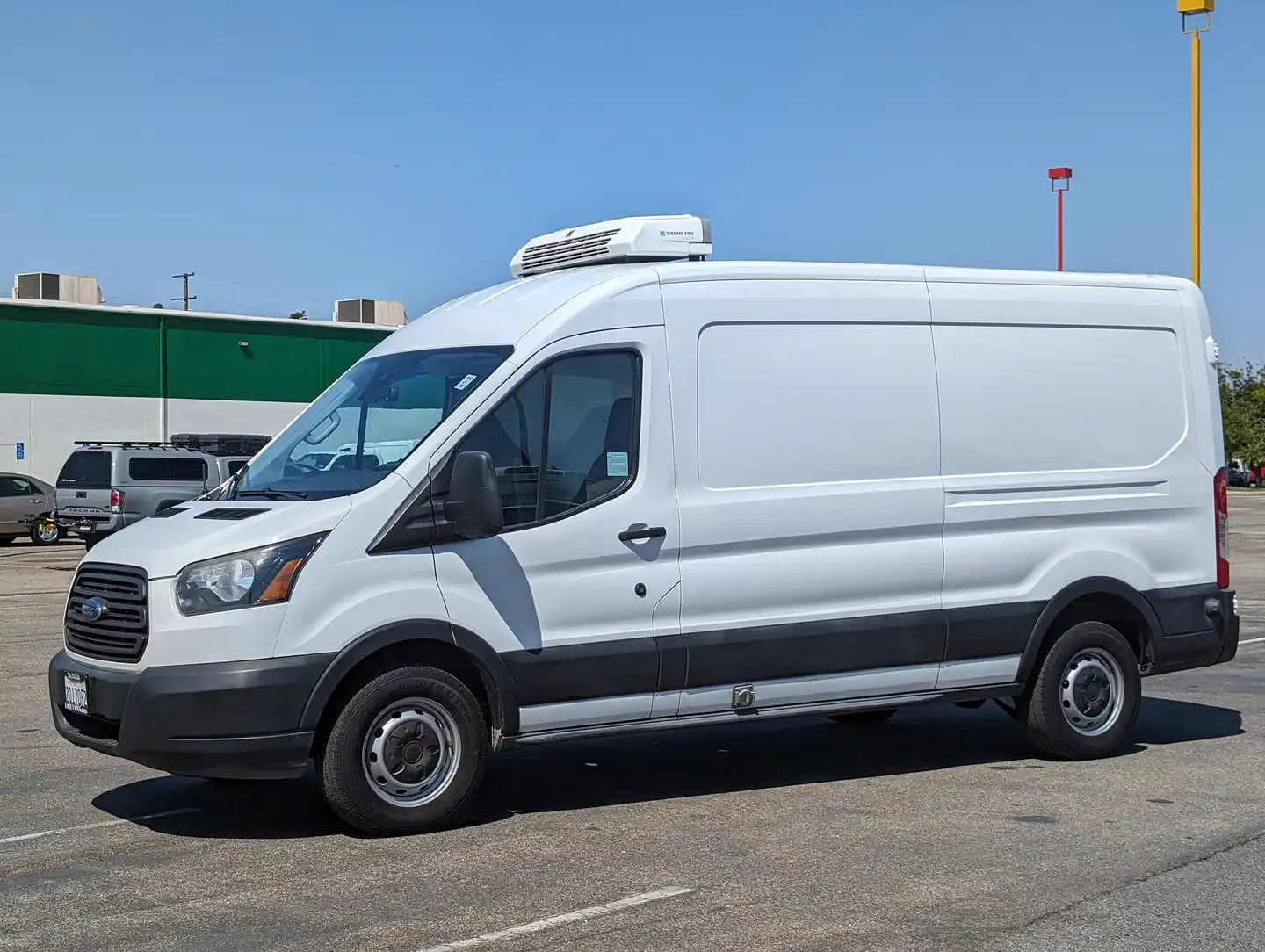 The 2017 Ford Transit-250 Refrigeration Reefer Long Mid Roof Van is a versatile and reliable vehicle designed to meet your commercial transportation needs. Featuring a long wheelbase of 148 inches and a gross vehicle weight rating (GVWR) of 9,000 pounds, this van offers ample space and strength for heavy-duty use. It includes a backup camera for enhanced safety and convenience, with overall dimensions of 235.5 inches in length and 100.7 inches in height, providing a generous cargo volume of 357.1 cubic feet to accommodate refrigeration equipment and goods.
