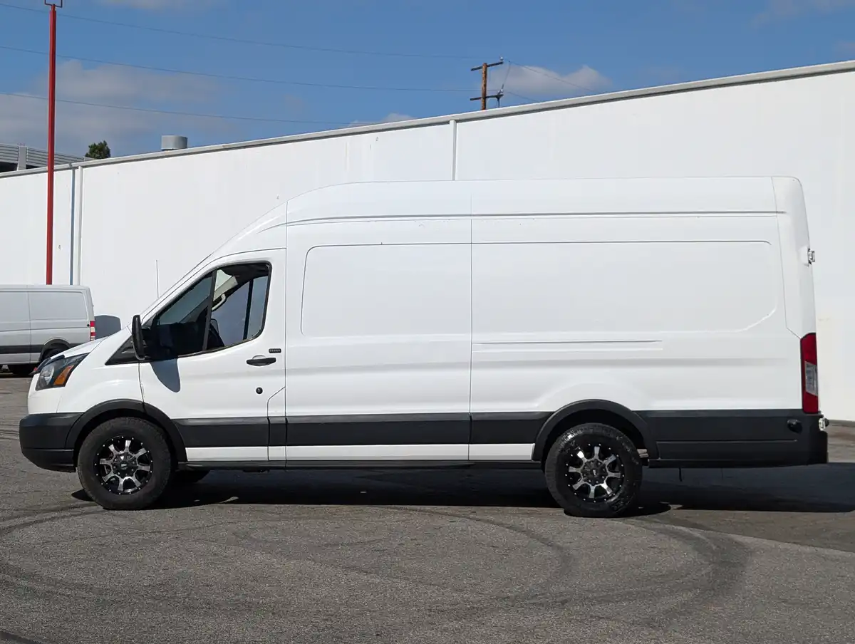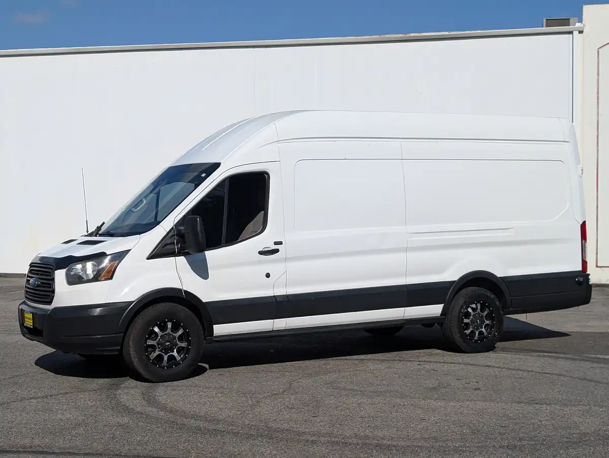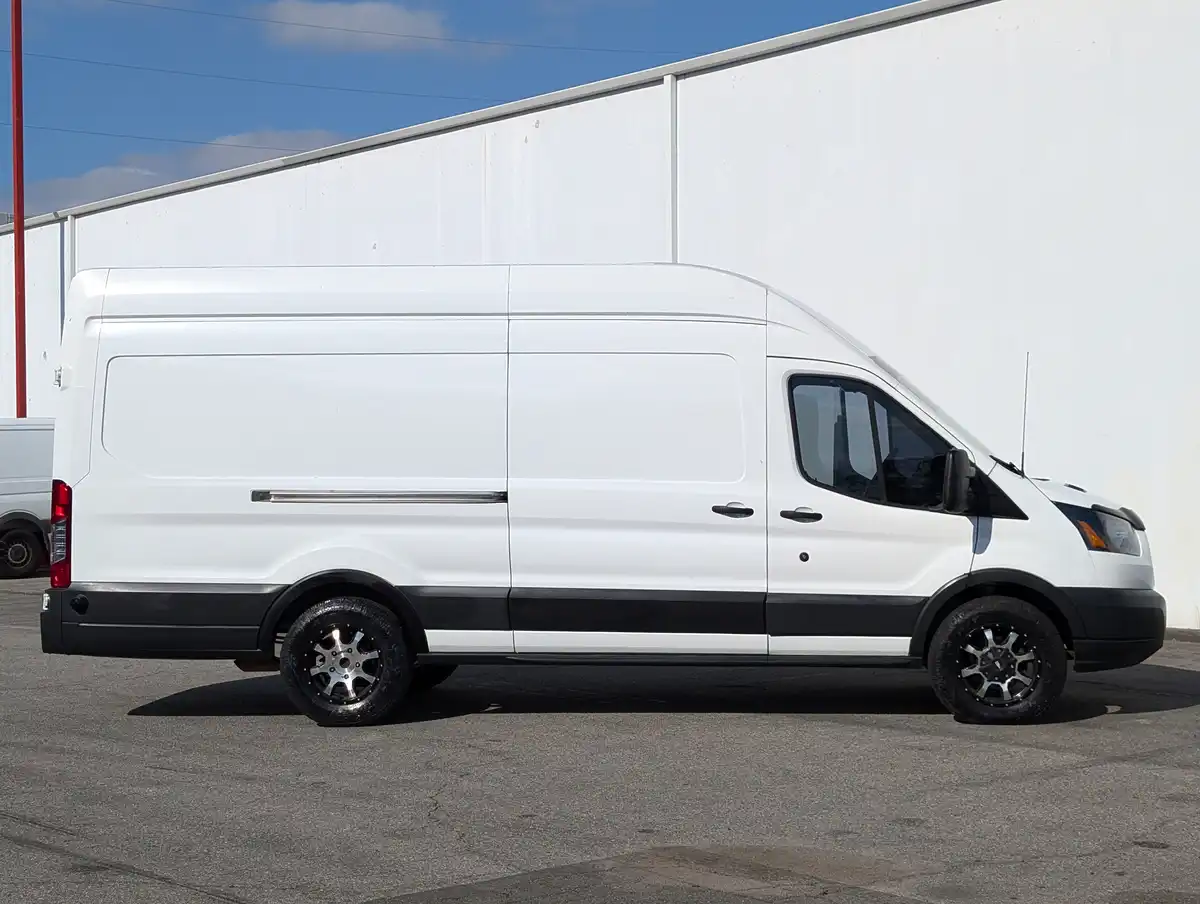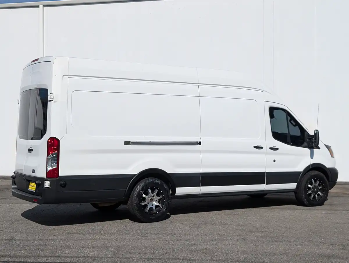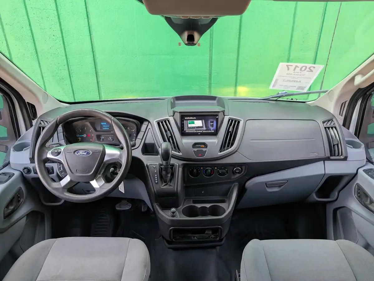 The 2017 Ford Transit-350 Extended Long High Roof Cargo Van DIESEL is a robust and versatile vehicle designed to meet demanding commercial needs. Featuring a new engine and an extended long wheelbase of 148 inches, this van offers a generous cargo volume of 487.3 cubic feet, making it ideal for transporting large loads. With a GVWR of 9,500 lbs and dimensions of 266.1" L x 81.3" W x 109.4" H, it provides ample space and durability. The sliding passenger side door adds convenience for easy access to the cargo area.