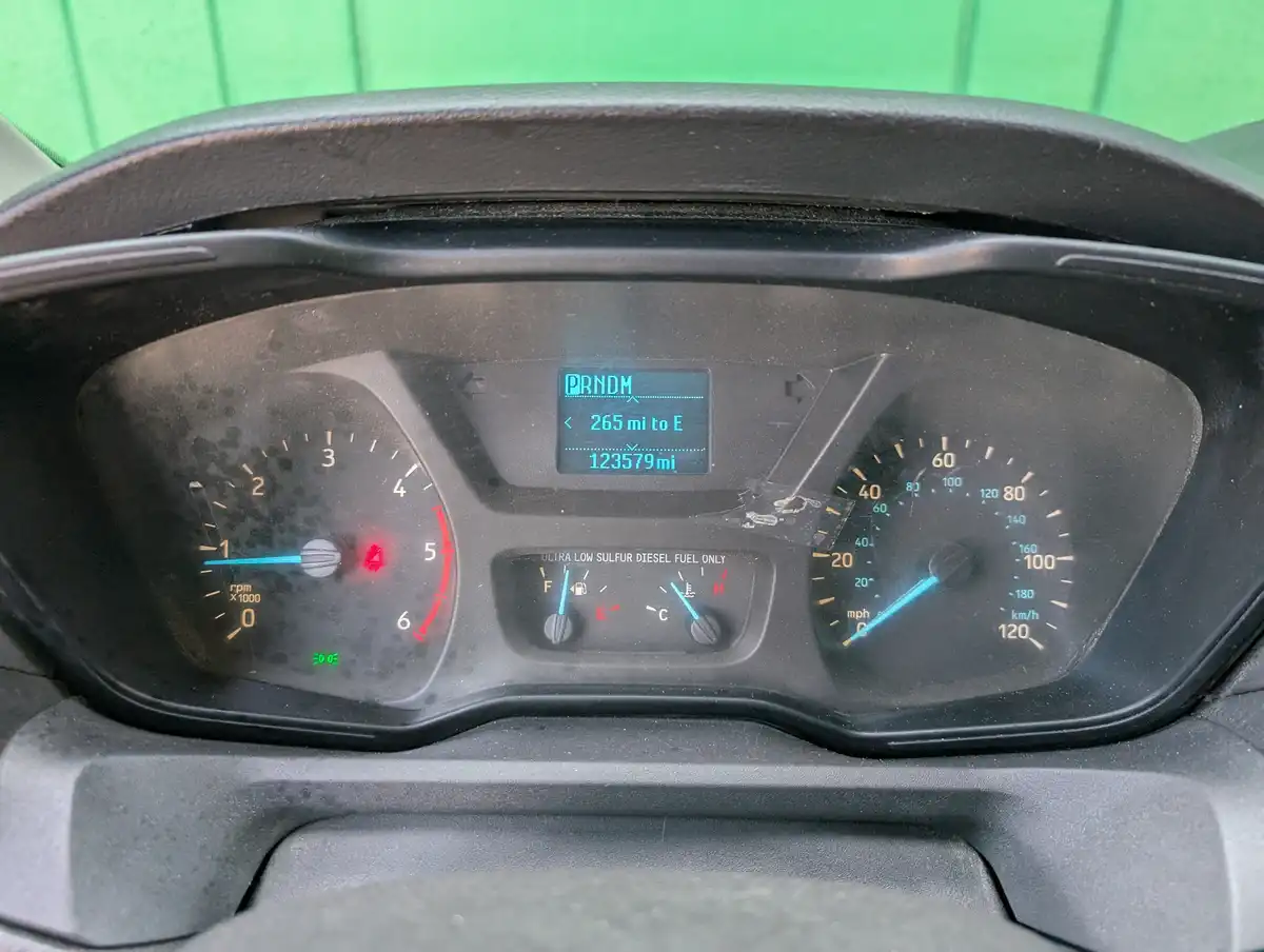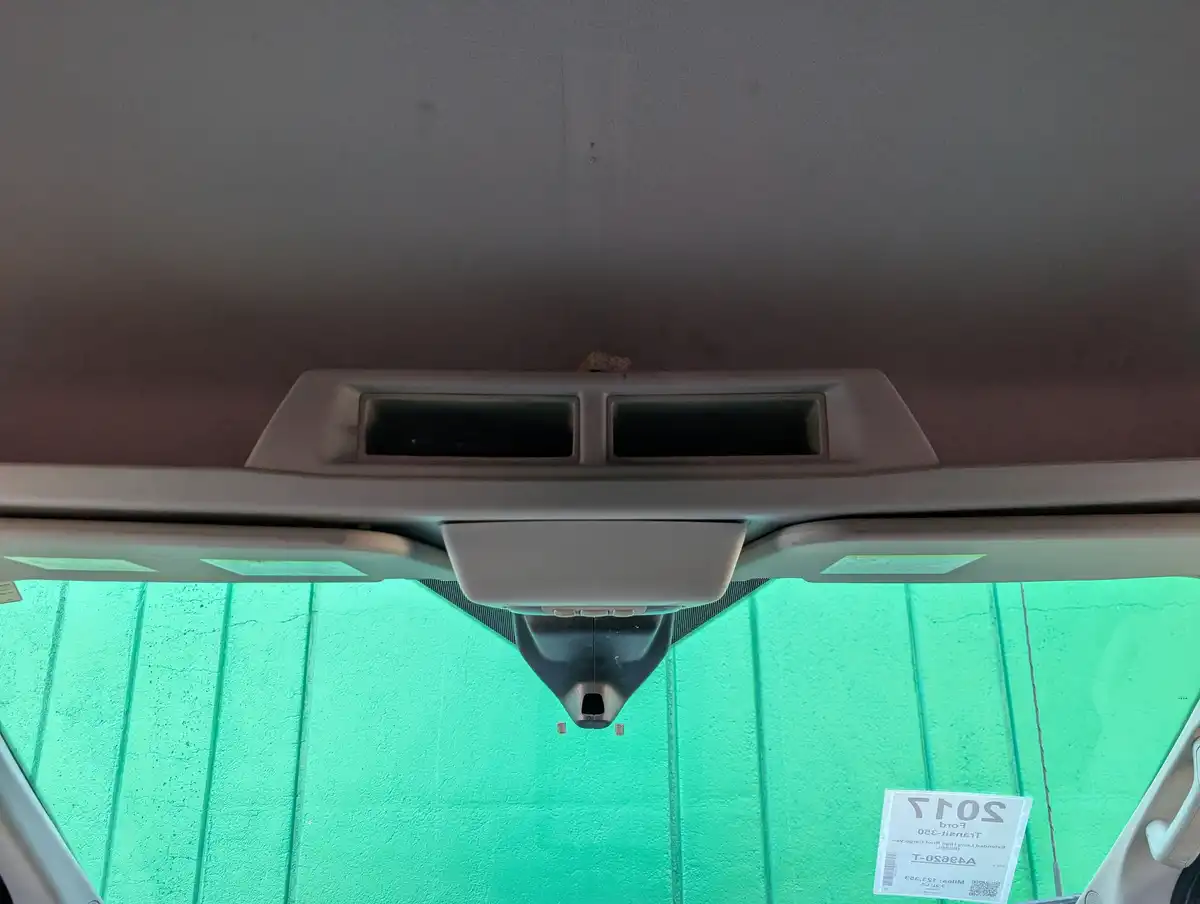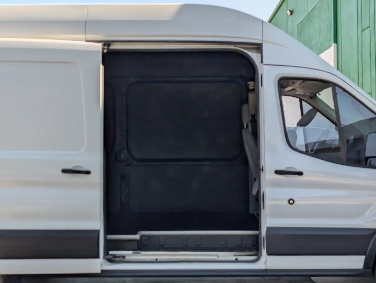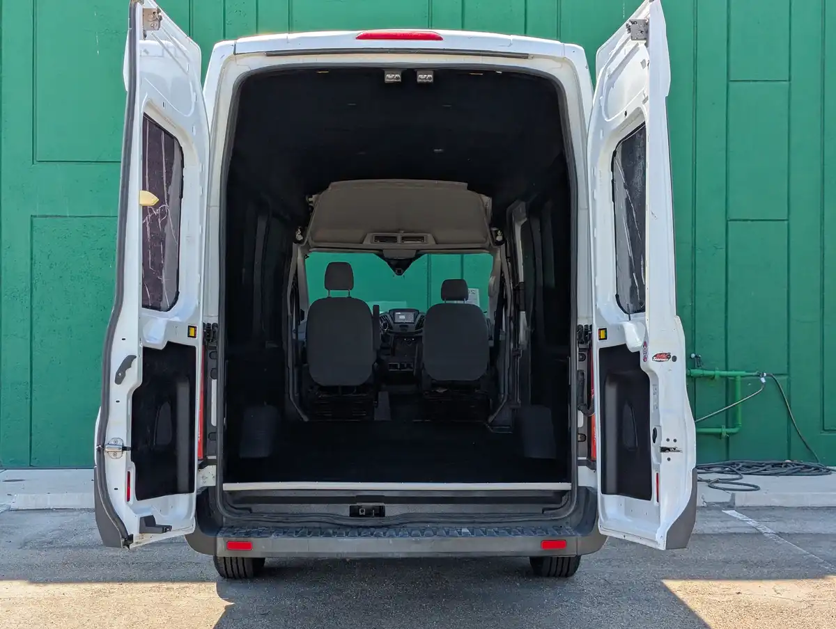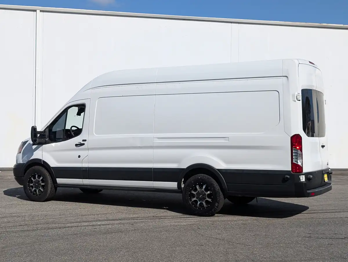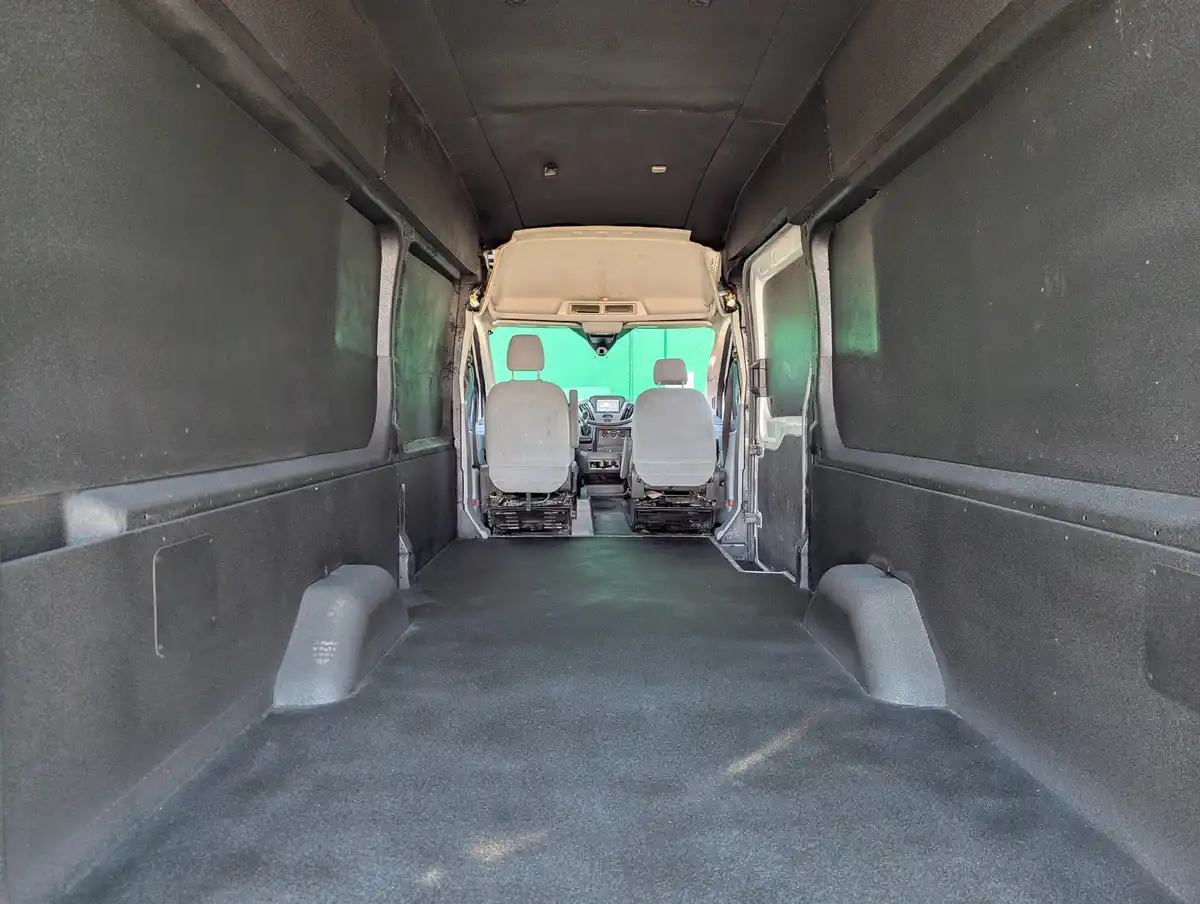 The 2017 Ford Transit-350 Extended Long High Roof Cargo Van DIESEL is a robust and versatile vehicle designed to meet demanding commercial needs. Featuring a new engine and an extended long wheelbase of 148 inches, this van offers a generous cargo volume of 487.3 cubic feet, making it ideal for transporting large loads. With a GVWR of 9,500 lbs and dimensions of 266.1" L x 81.3" W x 109.4" H, it provides ample space and durability. The sliding passenger side door adds convenience for easy access to the cargo area.