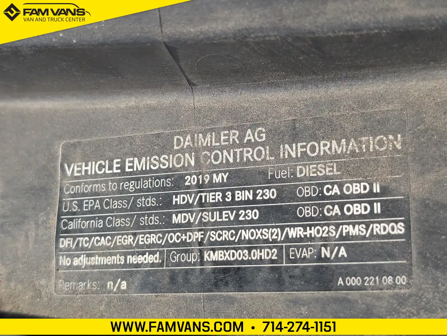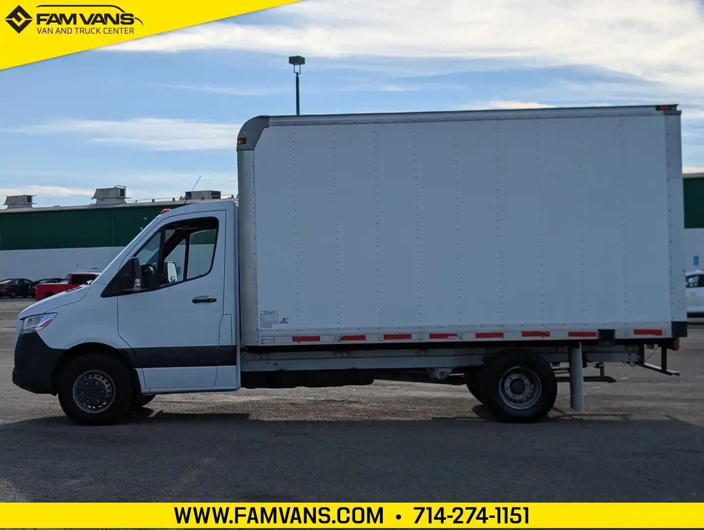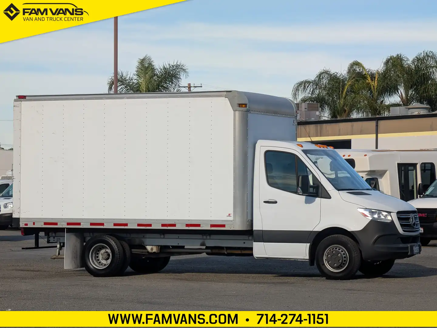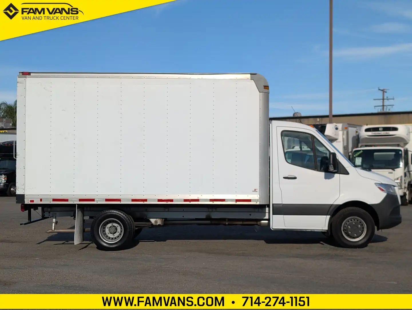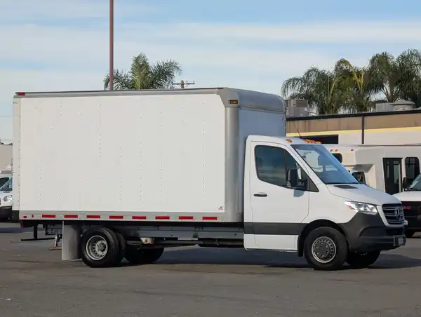 The 2019 Mercedes-Benz Sprinter 3500 14FT Box Truck DIESEL is a robust and versatile vehicle designed to meet demanding commercial needs. Featuring a 170-inch wheelbase, this box truck offers a generous 14-foot cargo box with an inside door height of 6.5 feet and a width of 7.5 feet, providing ample space for a variety of loads. With a Gross Vehicle Weight Rating (GVWR) of 11,030 lbs and a maximum payload capacity of 6,246 lbs, it is built to handle heavy-duty tasks efficiently. The 7G-Tronic plus transmission ensures smooth and responsive driving, while the seating capacity for two makes it practical for work crews.