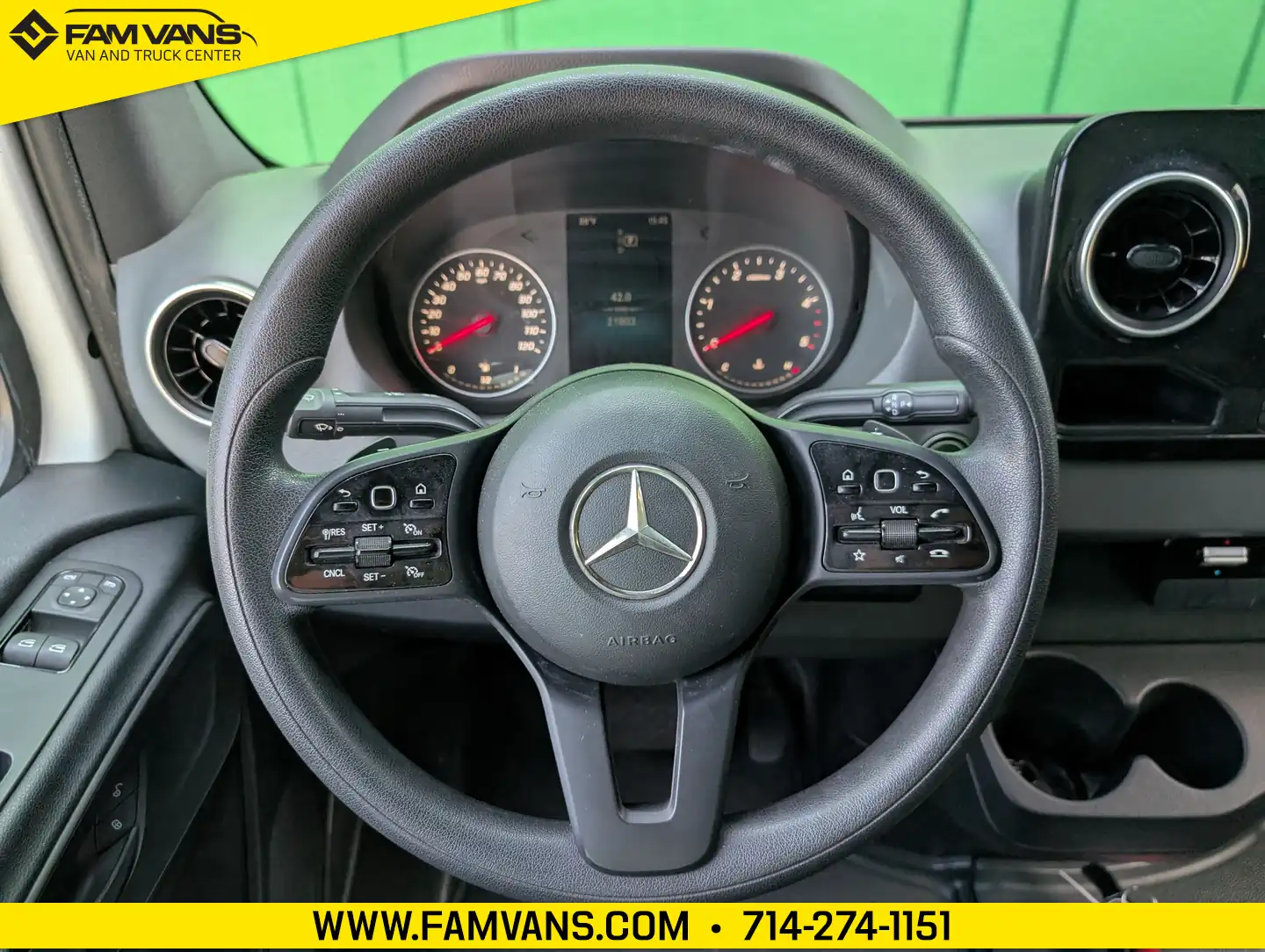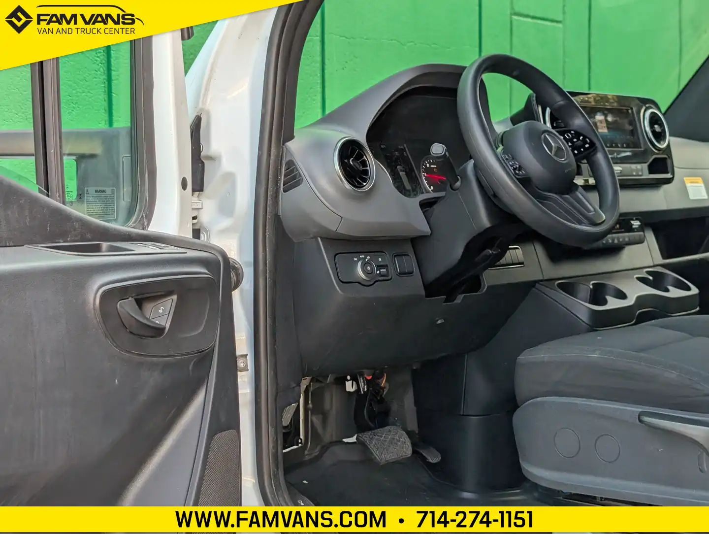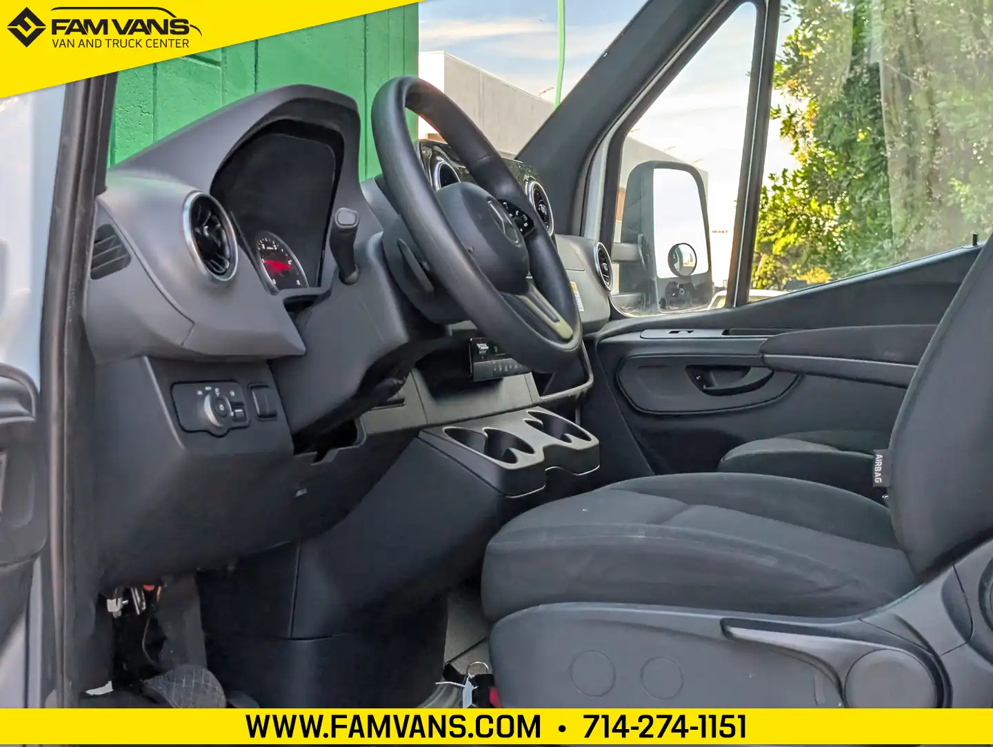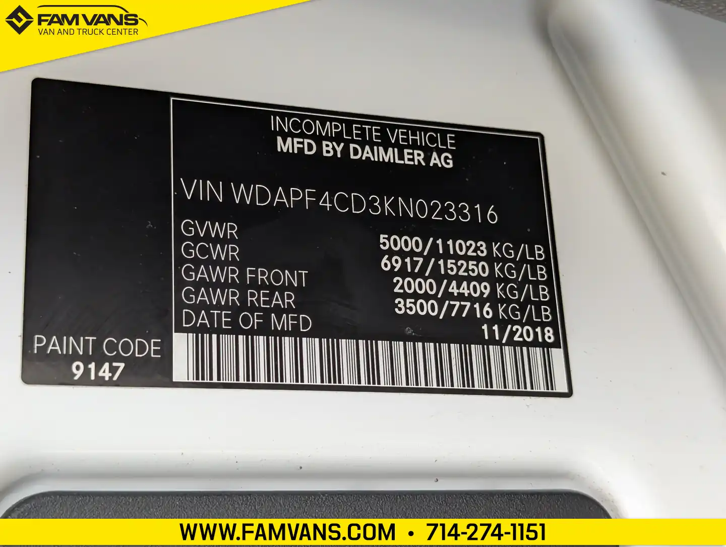 The 2019 Mercedes-Benz Sprinter 3500 14FT Box Truck DIESEL is a robust and versatile vehicle designed to meet demanding commercial needs. Featuring a 170-inch wheelbase, this box truck offers a generous 14-foot cargo box with an inside door height of 6.5 feet and a width of 7.5 feet, providing ample space for a variety of loads. With a Gross Vehicle Weight Rating (GVWR) of 11,030 lbs and a maximum payload capacity of 6,246 lbs, it is built to handle heavy-duty tasks efficiently. The 7G-Tronic plus transmission ensures smooth and responsive driving, while the seating capacity for two makes it practical for work crews.