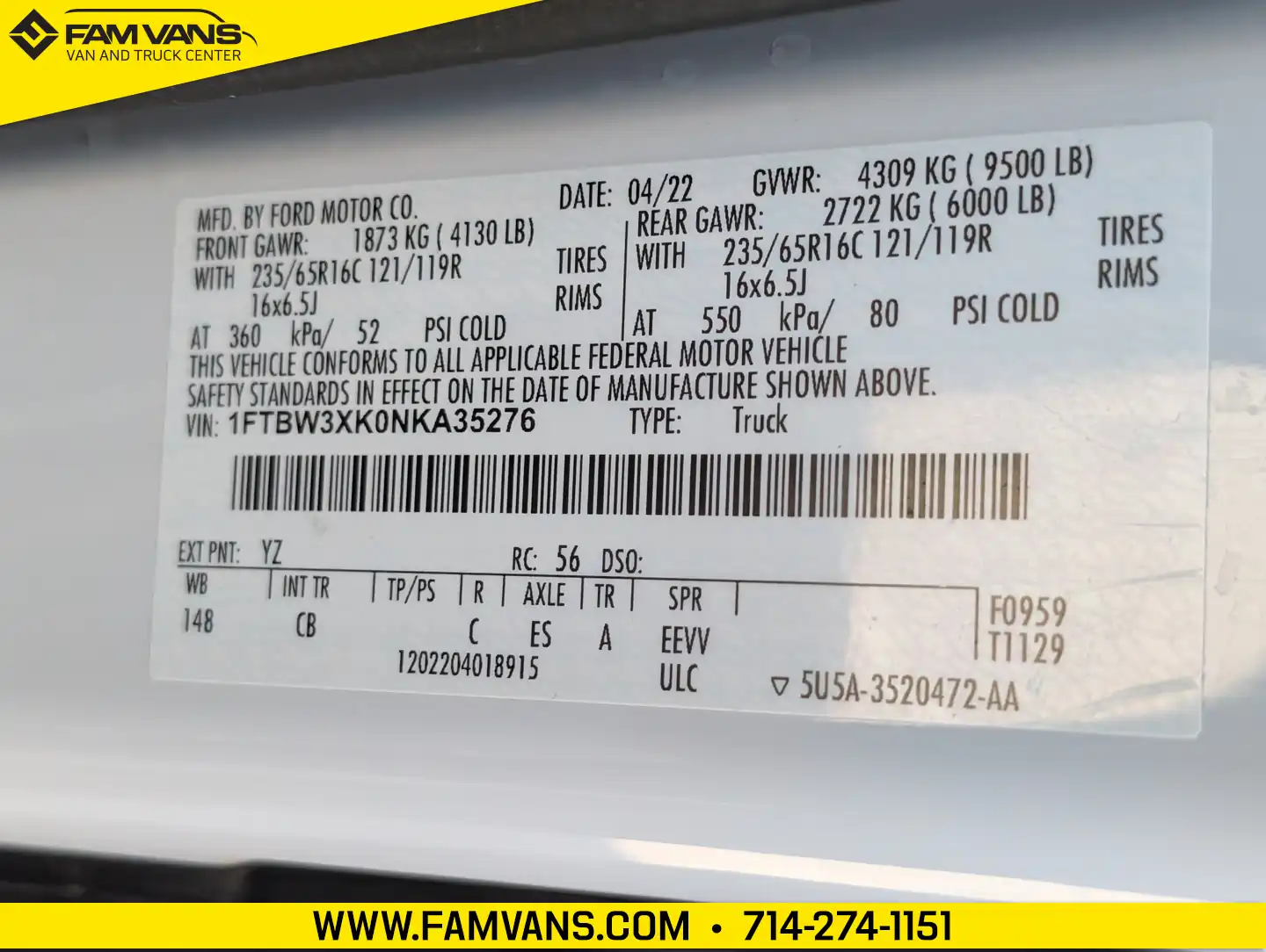 The 2022 Ford E-Transit 350 Extended Long High Roof Cargo Van ELECTRIC A35276 is a versatile and eco-friendly commercial vehicle designed to meet the demands of modern businesses. Featuring a long wheelbase of 148 inches and a robust gross vehicle weight rating (GVWR) of 9,500 lbs, this electric cargo van offers ample space and power for your transportation needs while reducing your carbon footprint.