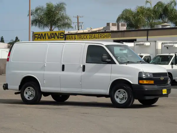 The Used 2023 Chevrolet Express 2500 Cargo Van is a versatile and reliable workhorse designed to meet your commercial needs. Featuring a 135-inch wheelbase and a Gross Vehicle Weight Rating (GVWR) of 8,600 lbs, this van offers ample cargo space and robust performance for your business demands.