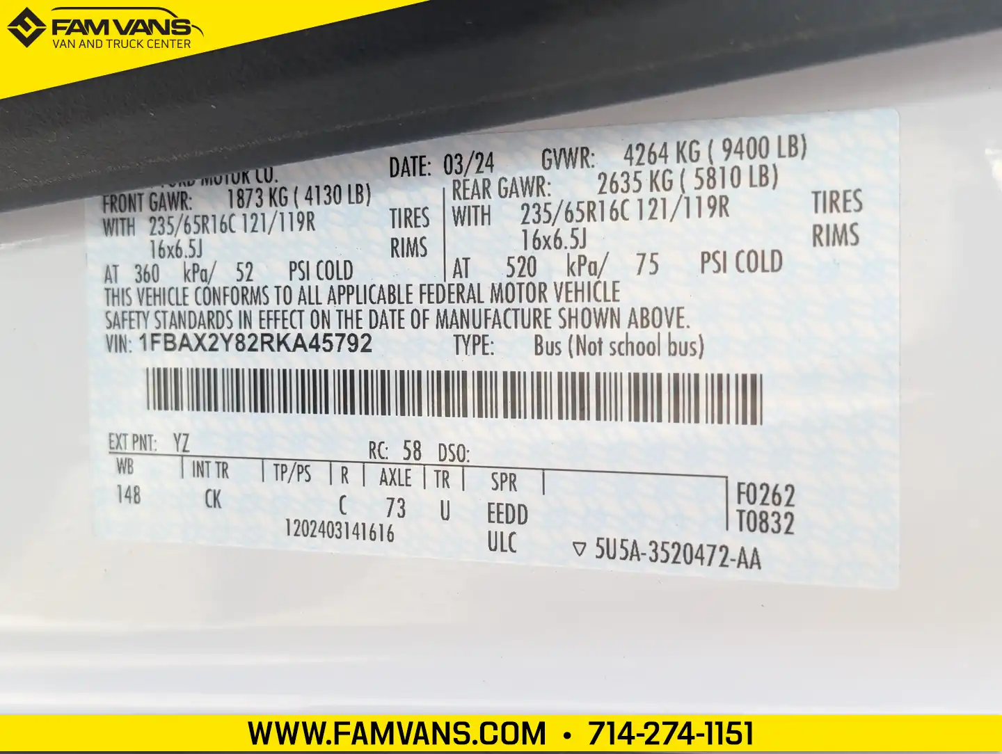The Used 2024 Ford Transit-350 Long Low Roof Passenger Van XLT A45792 is a versatile and spacious vehicle designed to meet your passenger transport needs. Featuring a long wheelbase of 148 inches, this low roof van offers ample interior space and comfort, making it ideal for group travel, shuttle services, or commercial use. Its robust build and reliable performance ensure it can handle demanding tasks while providing a smooth ride.