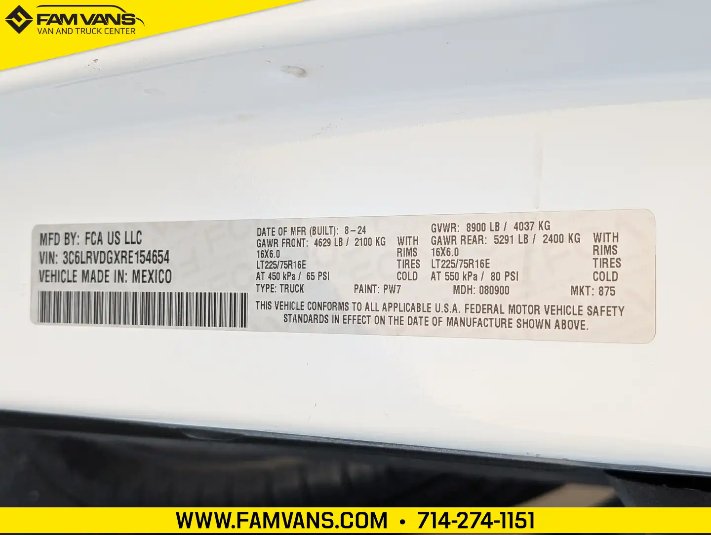The Used 2024 RAM ProMaster 2500 High Roof Cargo Van 159WB 154654 is a versatile and reliable vehicle designed to meet your commercial needs. Featuring a 159-inch wheelbase and a robust GVWR of 8,900 lbs, this van offers ample cargo space and durability for heavy-duty tasks. Equipped with a backup camera, it enhances safety and ease of maneuvering in tight spaces, making it an excellent choice for businesses requiring efficient and secure transportation.